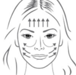 Then, with a slightly round, sweeping motion, advance upwards, massaging the skin and applying the treatment on your cheeks, starting every motion always from the middle to the sides of your face. A forehead massage should also be performed with a down-to-up motion.