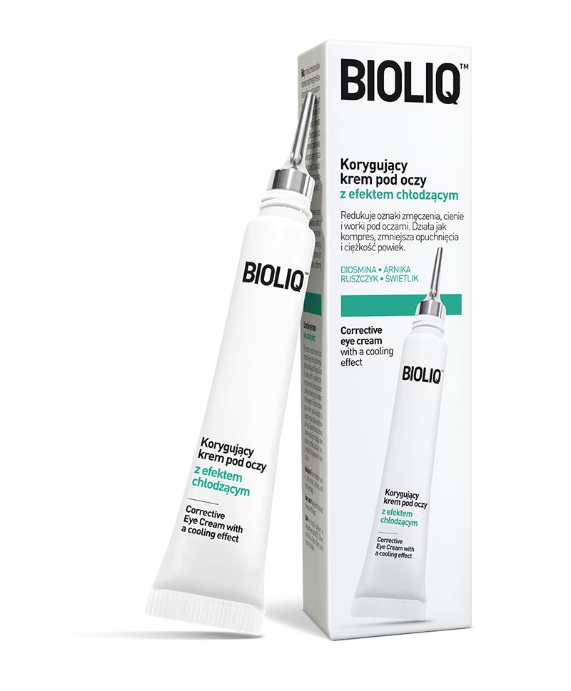 Krem z efektem chłodzenia. Redukuje oznaki zmęczenia, cienie i worki pod oczami. Działa jak kompres, zmniejsza opuchnięcia i ciężkość powiek.